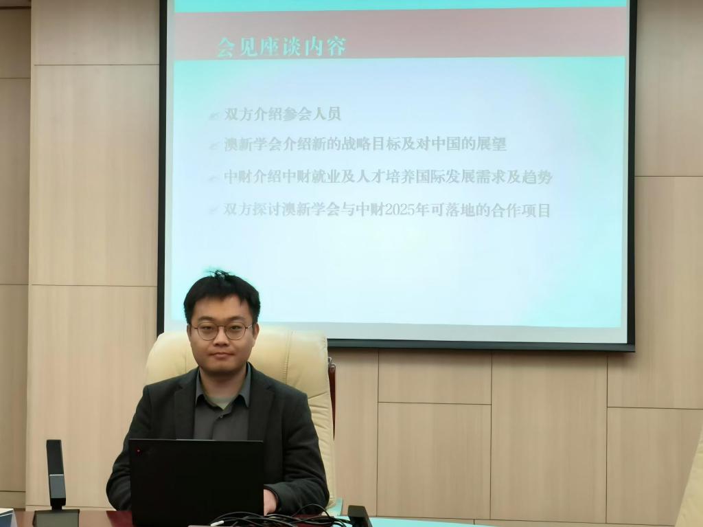 在会议的开始,澳新学会总裁Katrina Shanks女士对过去三十年与我校在专业资格认定、人才培养和学术交流等领域取得的成就表示了高度认可,并介绍了澳新学会2025年新的战略目标。她特别强调了与中国业界和学界加强合作的积极愿望,提出为中财学生提供短期专业课程,并为专业实践提供方案和支持。此外,她还提出了双方开展学术交流、联合主办学术研讨会等设想。
