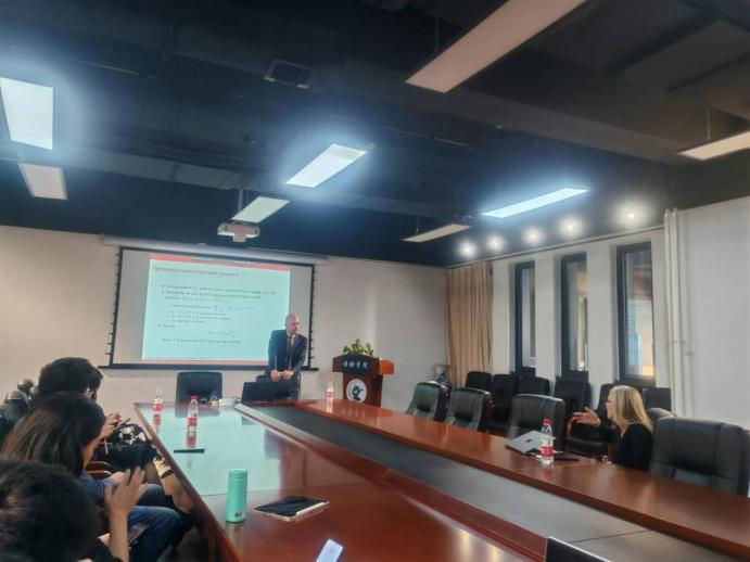 在Ioannis Kyriakou教授的精彩报告之后,与会师生与Ioannis Kyriakou教授进行了深入的交流和讨论。这些讨论不仅加深了师生对报告提出的“概率对冲(probability hedging)”策略的理解,也扩展了他们对长期储蓄投资策略和投资资金稳定性问题的认识。与会师生通过探讨不同效用函数和市场模型假设下的投资优化问题,有助于更好地把握如何在不确定的市场环境中制定出既符合个人风险偏好又能最大化终期财富的策略。与会师生还就如何将这些理论应用于实际的金融顾问服务中,帮助长期储户,如养老金储蓄者,进行更有效的资产配置等问题与Ioannis Kyriakou教授进行了交流。