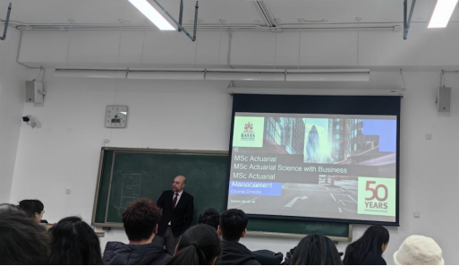 接下来,Kyriakou教授重点介绍了贝叶斯商学院精算研究生项目的核心竞争力和候选人画像,并就精算科学、精算与商业分析、精算管理等三个子项目的差异化优势、候选人偏好和课程安排作细致解读。随后,Kyriakou教授分享了项目的短期选修课、国际选修课、IFoA豁免机制和通过率,展示了项目尊重学生选择、鼓励多元发展、致力培养顶尖保险与精算人才的特点,并欢迎同学们通过邮件联系获取更多个性化解答。
