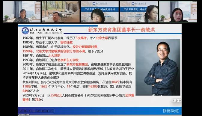 为了更好地落实立德树人根本任务,落实应用型培养目标,提升教师的教学水平和推进课堂教学革新,促进教师潜心教书育人,12月9日14:00-17:00,通识教研室、创业教研室开展线上教学技能研讨活动。教学研讨活动分三部分进行: