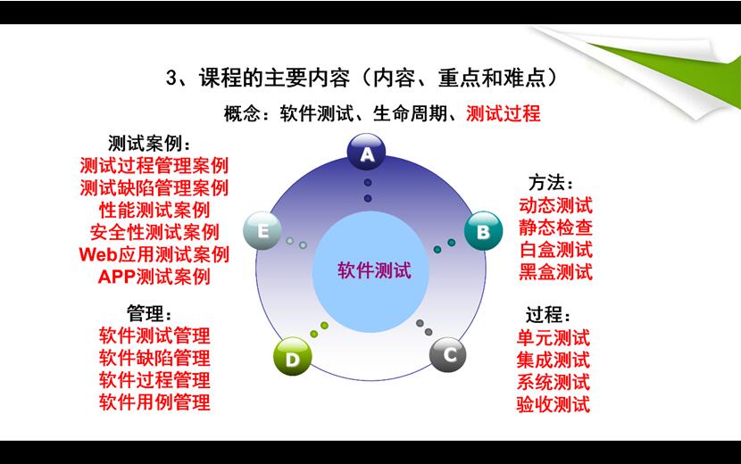 张波老师还建议大家要给学生上序言课。以《软件设计与体系结构》、《软件测试技术应用》课程举例,用思维导图、拓扑图等方式把整个课程的课程概述、教学设计、教学方法、创新特色讲清楚,并对学生的教学效果进行要求。