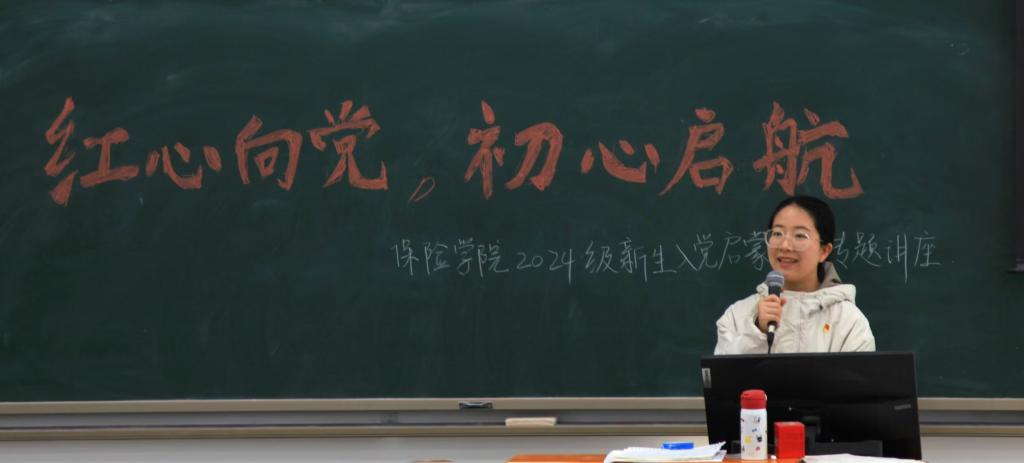 讲座伊始,来自保险专硕23班的展艺桐同学分享了她的入党心路历程。展艺桐同学表示,她自幼受祖辈的影响,心中萌芽了一颗炽热的红色种子,对党怀揣着深厚敬仰与无限向往。在大学期间,她积极学习党的理论,参与社会实践,提升政治素养和综合能力,最终在党组织的关怀和培养下成为了一名光荣的共产党员。展艺桐同学的分享深情而真挚,让新生们深受启发,备受鼓舞。