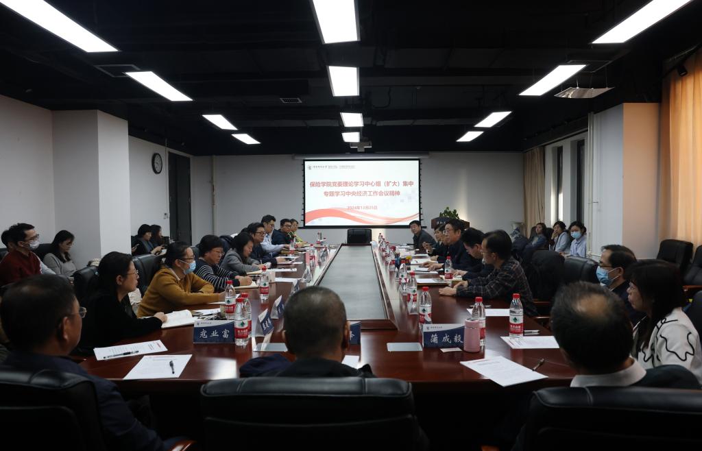 李晓林教授作学习中央经济工作会议精神主题发言。李晓林认为,此次会议是在国内外形势的重要节点,布局发展窗口期政策新基调的一次重要会议。宏观调控基调发生重大变化,将加大逆周期调节力度。当前外部环境变化带来的不利影响加深,我国经济运行仍面临不少困难和挑战,但我国经济基础稳、优势多、韧性强、潜能大,长期向好的支撑条件和基本趋势没有变。李晓林指出,中央经济工作会议作出的决策部署,对于保险行业来说既是机遇,也是挑战,学院要更加聚力服务大局发挥保险重要作用,自觉融入中国式现代化建设全局,为国家经济建设发出中财大保险声音。