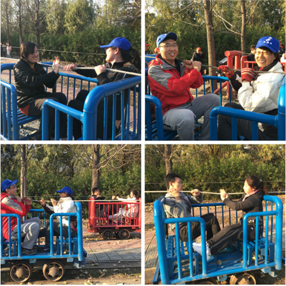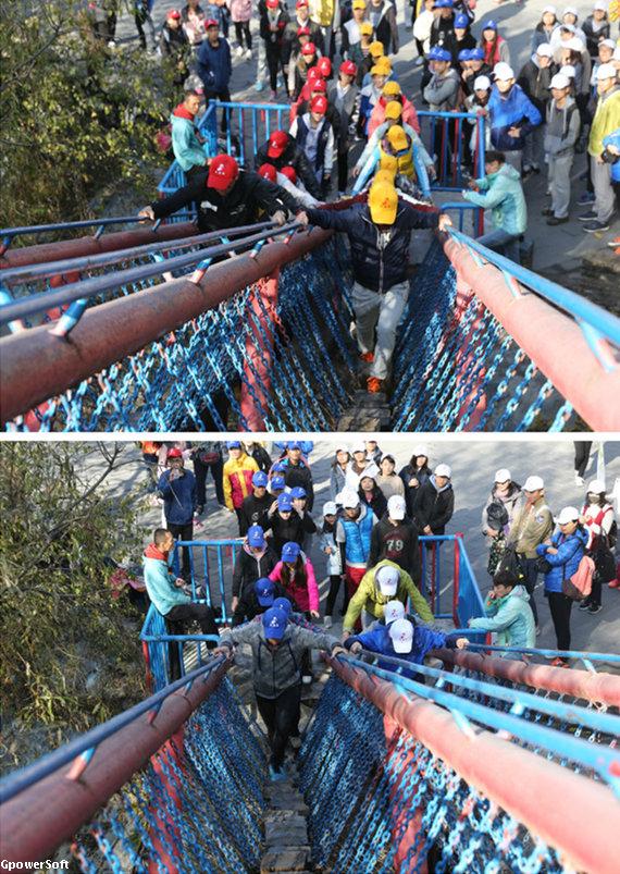 此次拓展共包括“步步高”、“同心圆”、“爬网”、“集体木鞋”、“动力火车”、“高障桥”、“丛林飞降”和“攀岩”八个项目。活动中,随机组成的四队队员们全情投入,群策群力、互助互信,充分发挥团队协作精神,克服重重困难,合作完成了所有项目。