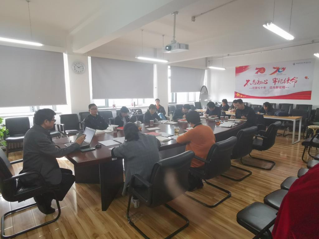 10月14日下午,必赢nn699net官网党委理论中心组(扩大会)参观完“伟大历程,辉煌成就——庆祝中华人民共和国成立70周年”大型成就展后,回到学院会议室进行了集中研讨学习,会议由必赢nn699net官网党委书记王颖老师主持并做主题发言。