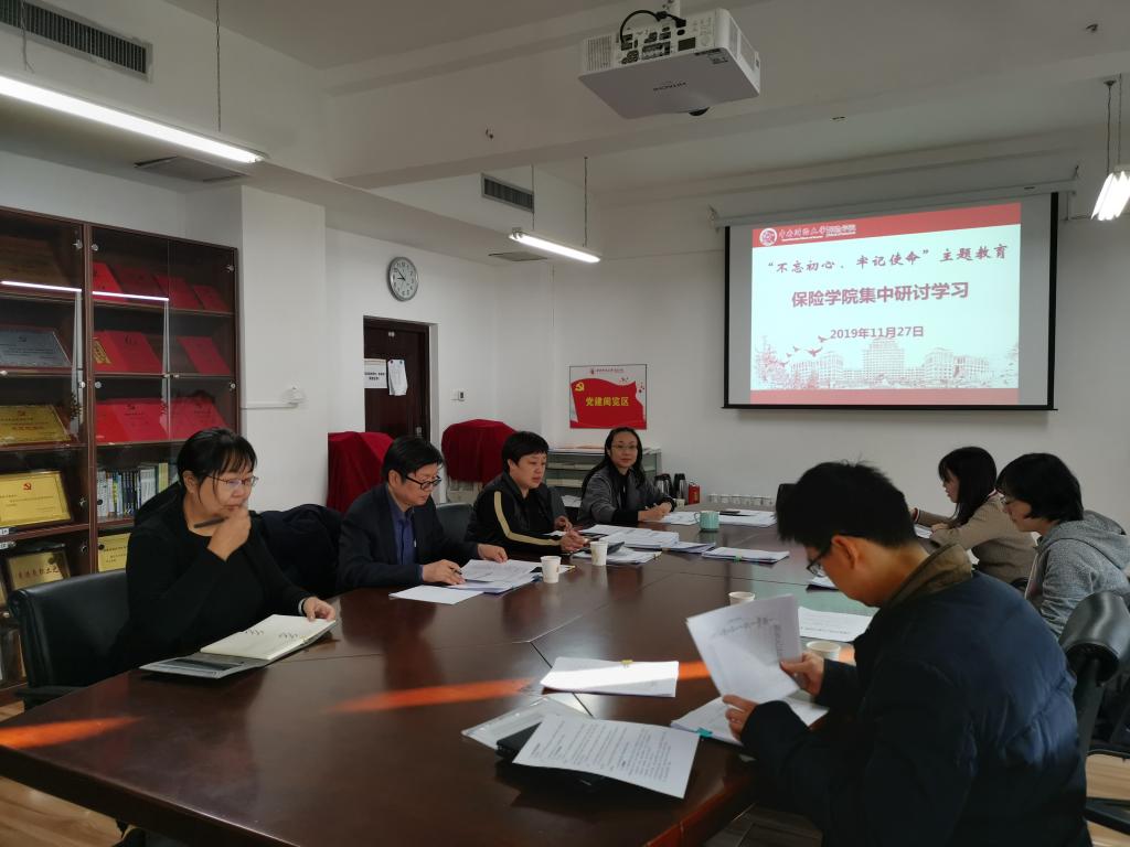院长李晓林做了重点发言,他谈到:习近平在北京市考察工作时强调,建设和管理好首都,是国家治理体系和治理能力现代化的重要内容。北京要立足优势、深化改革、勇于开拓,以创新的思维、扎实的举措、深入的作风,进一步做好城市发展和管理工作,在建设首善之区上不断取得新的成绩。习近平指出,建设好首都,推动北京持续健康发展,需要付出长期艰苦的努力。北京地位高、体量大、实力强、变化快、素质好,是其主要特点和优势,同时不断发展的北京又面临令人揪心的很多问题。把各方面优势发挥出来,把各种问题治理好,要处理好国家战略要求和自身发展的关系,在服务国家大局中提高发展水平。习近平总书记多次对京津冀协同发展等工作作出重要指示。作为高校党员干部,特别是一个与风险管理和保险保障事业有密切关系的学院负责人,在经济社会发展的关键时期,应该针对保险行业与经济社会发展融合不足的问题,从保险理论上扩展保险的职能,在推动保险业为新时代经济社会发展贡献力量的进程中,将为人民谋幸福的理念贯穿到风险治理,将为民族谋复兴的目标贯穿到价值创造,将命运共同体思想贯穿到涉险资源配置,我校保险保障的学科建设必然会有更大的发展。