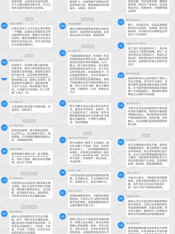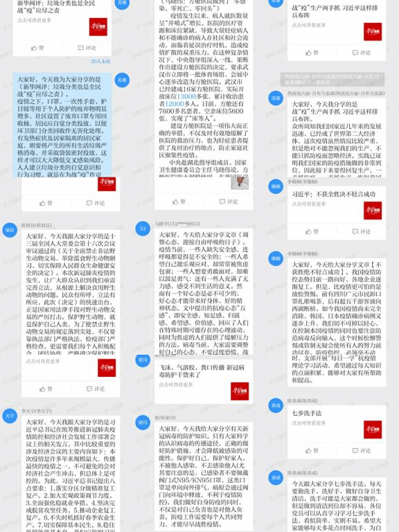 必赢nn699net官网2017、2018、2019级本科生联合党支部开展“每日一学”活动,全体党员利用学习强国学习平台,23天的知识普及,23位党员轮流分享党和政府有关新型冠状病毒疫情防控的政策措施、新型冠状病毒感染防护知识等疫情防控相关知识,参与人次达390余次,发言字数32000余字。或是学习七步洗手法科学保卫健康,或是科普解读新冠肺炎康复者捐献恢复期血浆招募动员通知,亦或是分享新冠病毒传播途径促进有效预防,党员们每天针对不同话题积极发表自己的见解,总结自己的收获,并以实际行动向身边的亲朋好友进行宣传,做科学防疫知识普及的先锋。