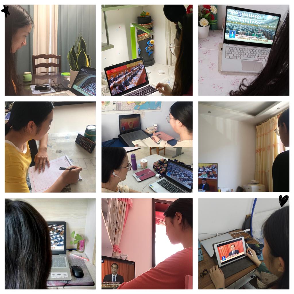 宣传委员赵婧谈到:此次疫情是新中国成立以来我们经历的传播最快最广最难控的公共卫生事件,在以习近平同志为核心的党中央坚强领导下,全国各族人民通过艰苦卓绝的努力和牺牲,疫情防控取得重大进展。李克强总理在报告中强调2020年要抓好“六稳”“六保”,要打好脱贫攻坚战,编制好“十四五”规划,为开启第二个百年奋斗目标新征程擘画蓝图。中华民族向来不畏惧艰险,更有战胜任何挑战的坚定意志和能力!