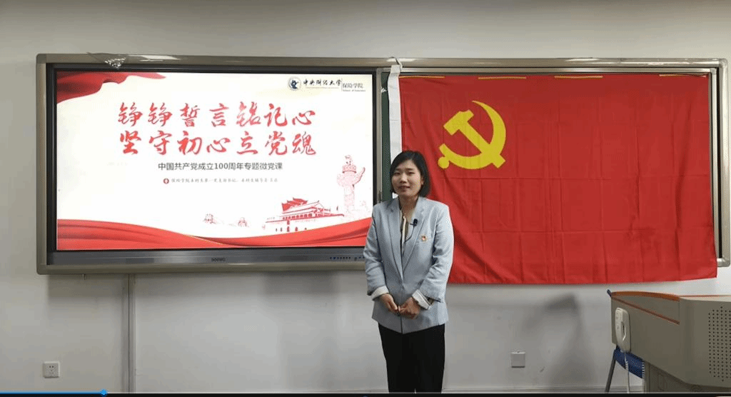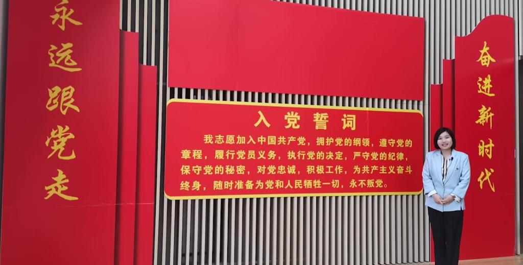 她提到,党的十九大闭幕后不久,习近平总书记带领新一届中央政治局常委来到上海,瞻仰中共一大会址,并重温了入党誓词。他说:“入党誓词字数不多,记住并不难,难的是终身坚守。每个党员要牢记入党誓词,经常加以对照,坚定不移,终生不渝。”总书记以上率下,谆谆教诲,全党同志要牢记誓词,牢记这一份最初也是终身的庄严承诺。“奋斗百年路 启航新征程”,我们更应当牢记入党宣誓时的初心,用行动彰显共产党人的精神,不忘来时路,永远跟党走,红色中财人,龙马担乾坤!