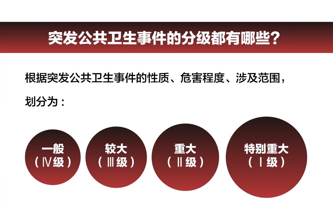 《国家突发公共卫生事件应急预案》规定,根据突发公共卫生事件的性质、危害程度、涉及范围,突发公共卫生事件划分为特别重大(一级)、重大(二级)、较大(三级)和一般(四级)四个等级。其中,一级响应属于最高级别的响应。