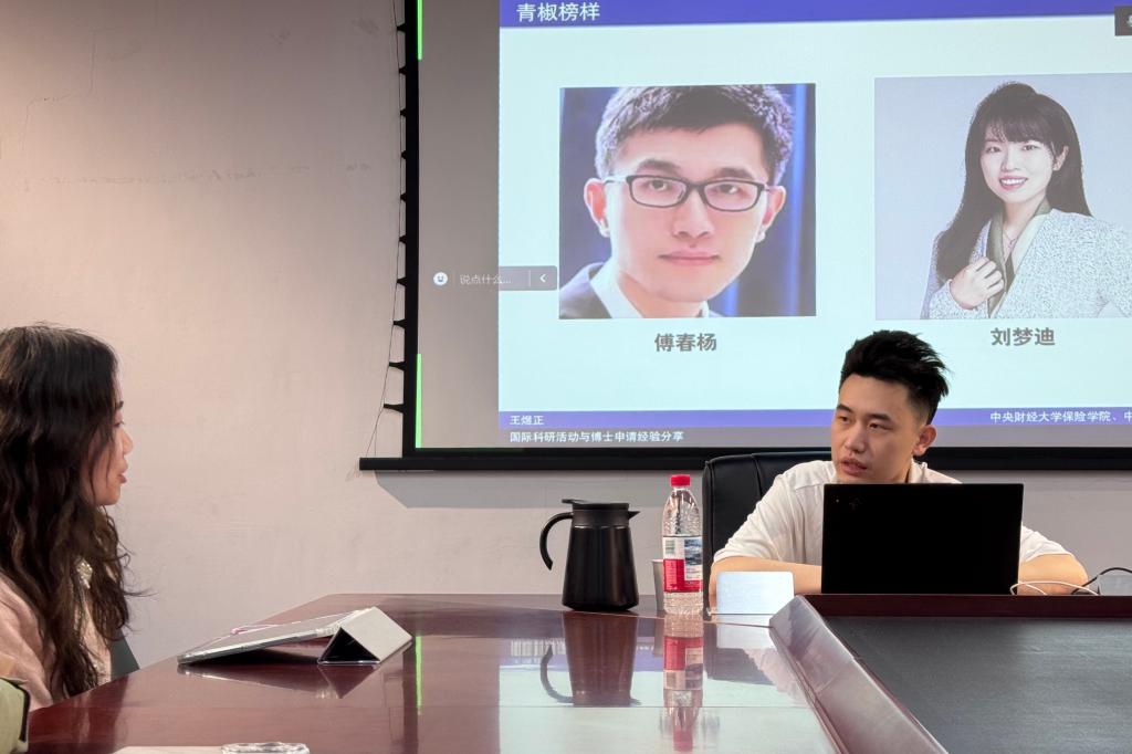 为深化研究生国际学术视野,助力学生完善学业发展规划,3月14日上午9时,必赢nn699net官网在13号楼215会议室举办“国际化学术发展路径规划”主题交流会。应学院邀请,必赢官网2022级直博生、国家留学基金委(CSC)公派芝加哥大学联合培养博士生王煜正作专题经验分享,本院精算学硕、保险学博士参与交流。