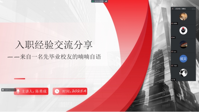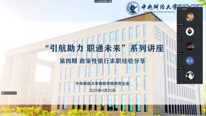 2025年4月20日晚,由必赢nn699net官网研究生会主办的“引航助力 职通未来”系列求职分享会第四期——“政策性银行求职经验分享”顺利举行。三位来自国开发银行、中国农业发展银行和中国进出口银行三大政策性银行的优秀校友出席了分享会。在此次分享会中,校友们精心准备、倾囊相授,带来了满满干货。他们深入分析了政策性银行的整体发展趋势,详细讲解了求职过程中的关键要点与实用技巧,分享了在政策性银行职场中应具备的积极心态与职业素养。