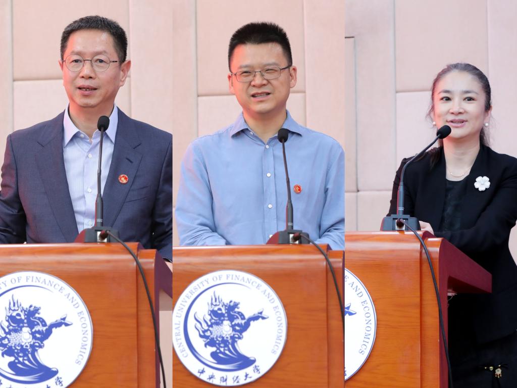 新任理事会会长陈剖建、常务副会长蒋铭副会长兼秘书长李艳秋发言