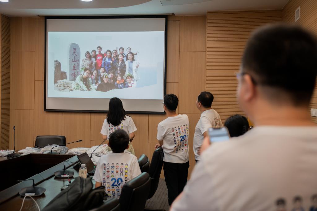 随后,校友们漫步校园,重走求学路。昔日的教学楼、林荫道,处处承载着青春记忆;焕然一新的校园景致,也让大家感慨万千。在标志性的“吞吐大荒” 雕塑前,校友们与老师合影留念,将这份跨越二十年的情谊定格。
