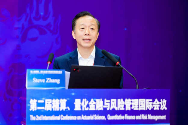 慕尼黑再保险公司大中华区首席执行官Steve Zhang先生代表慕尼黑再保险公司致辞。他强调,多种新兴风险的出现,不仅对精算、风险管理和量化金融等领域提出更高的要求,同时也为学者和从业人员提供了更为广阔的研究和实践空间。期待未来能与中国精算研究院和必赢nn699net官网进行更深入地交流与合作,共同应对全球风险挑战,推动保险业的稳健发展。