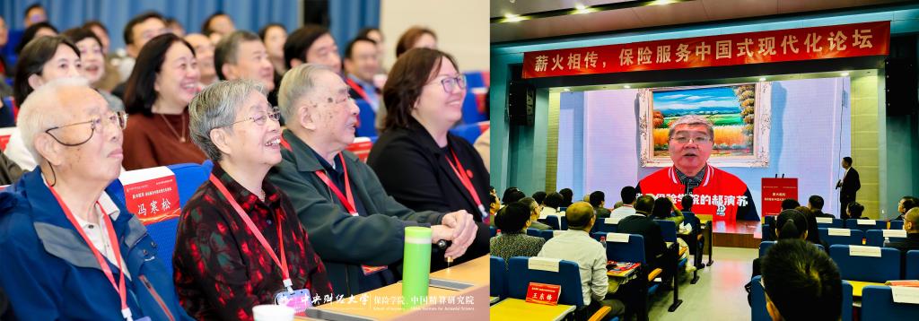 上午的论坛主题为“薪火相传:中财保险精神的传承与发扬”,包括两场主题演讲与一场圆桌论坛。
