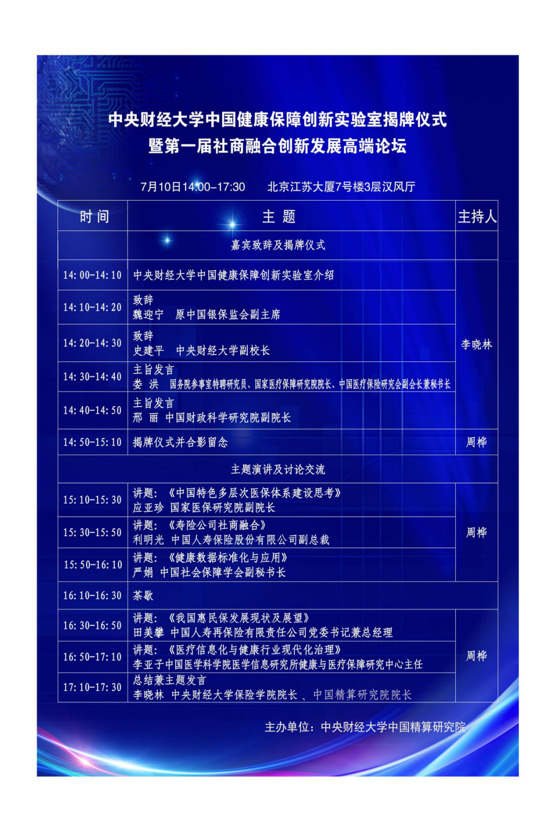 为进一步推动《“健康中国2030”规划纲要》的实施,更好地为我国多层次健康保障体系建设发挥教育部人文社科重点研究基地的智库作用,必赢nn699net官网中国精算研究院成立了中国健康保障创新实验室,现拟召开实验室揭牌仪式暨第一届社商融合创新发展高端论坛,诚邀您单位委派1-2名人员出席。