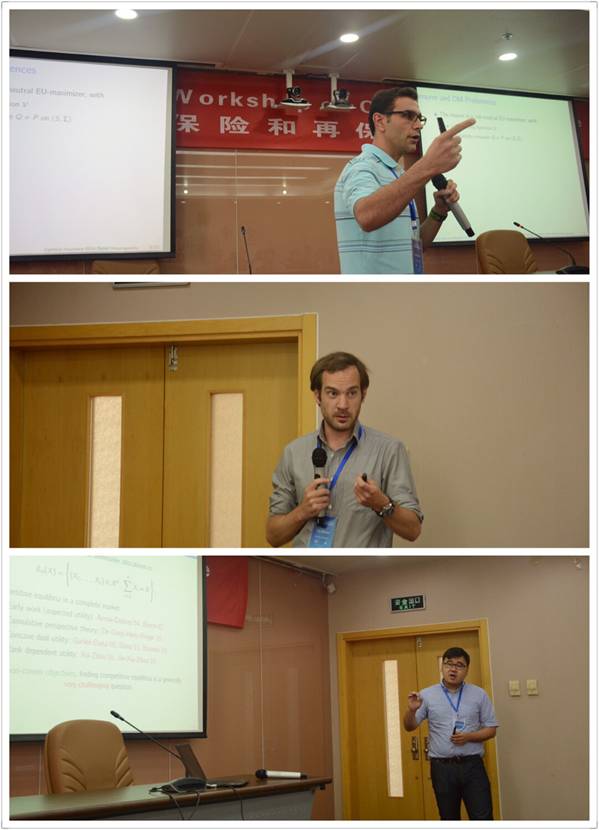 本次会议邀请到了中科院夏建明研究员、阿姆斯特丹大学Tim Boonen教授、香港大学Ka Chun Cheung 教授、伊利诺伊大学Alfred Chong 教授、滑铁卢大学 Mario Ghossoub教授和王若度教授、中国财产再保险股份有限公司精算师李晓翾总精算师、密歇根州立大学Haiyan Liu教授、爱荷华大学Ambrose Lo教授、香港中文大学Philip Yam教授等20多位专家做了报告。报告内容涵盖了最优再保险、再保险定价、保险需求、再保险与融资、保险合同设计、风险评估、道德风险、系统性风险、投资策略、均衡分红策略、相依模型等问题。