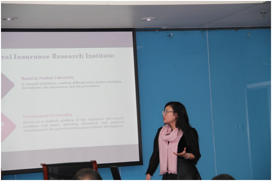 南开大学农业保险研究中心朱文君老师作学术报告,介绍南开大学农业保险研究中心的相关研究工作