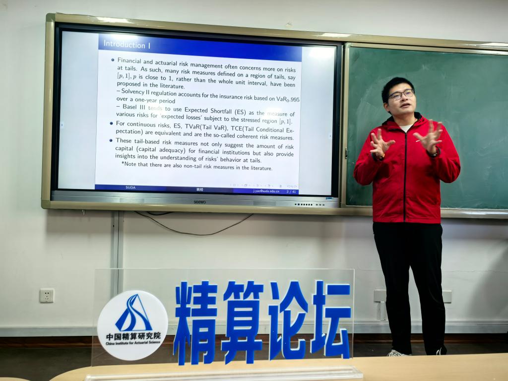 在讨论环节,参会师生围绕用于拟合不同频率数据的分布选择、TV作为风险度量工具的性质及其在金融保险领域的应用,以及优化模型中的参数设置等问题展开了深入探讨。姚教授的报告为在场师生提供了宝贵的学术启示和思考方向,此次精算论坛在热烈的学术交流氛围中圆满结束。