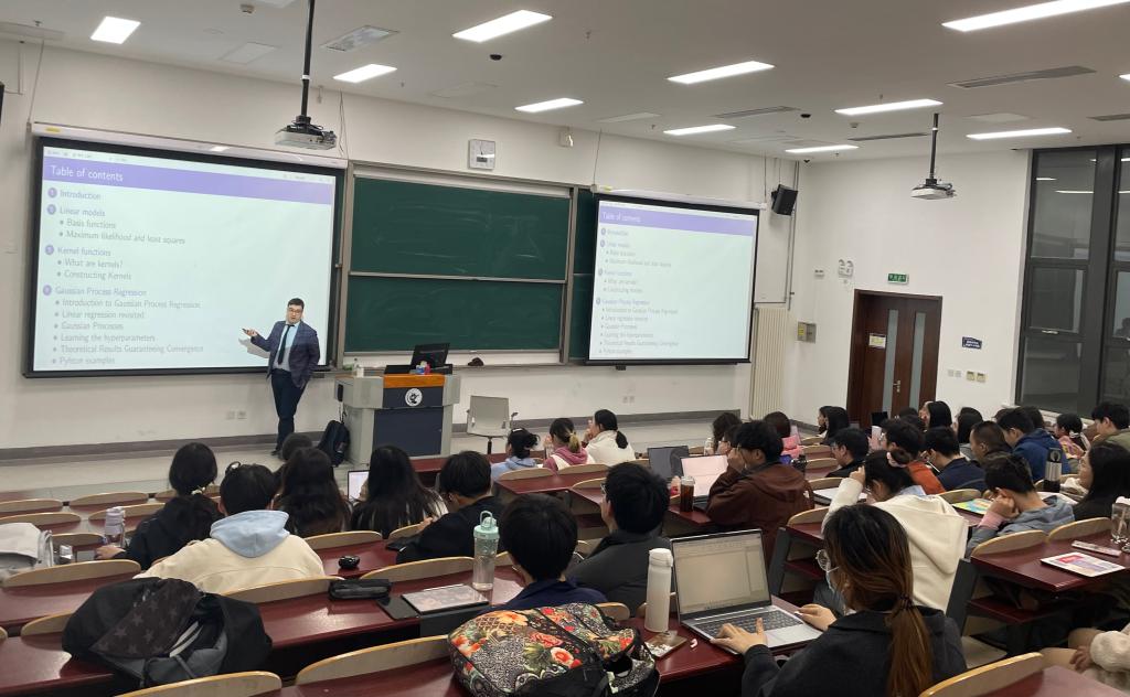 2024年3月27日下午和2024年3月28日上午,意大利乌迪内大学的Andrea Molent老师在必赢nn699net官网沙河校区给我校师生开设了题目为《Machine Learning in Finance: Gaussian Process Regression and its Application in American Option Pricing》的两次短期课程。在为期两天的课程中,Andrea Molent老师首先介绍了金融与精算中的机器学习方法概述,然后重点介绍了高斯过程回归的原理和方法,最后以美式期权的定价为例,讲解了Python实现用高斯过程回归定价的应用。必赢官网韦晓老师、郑敏老师和学生共40余人参与了此次短期课程。