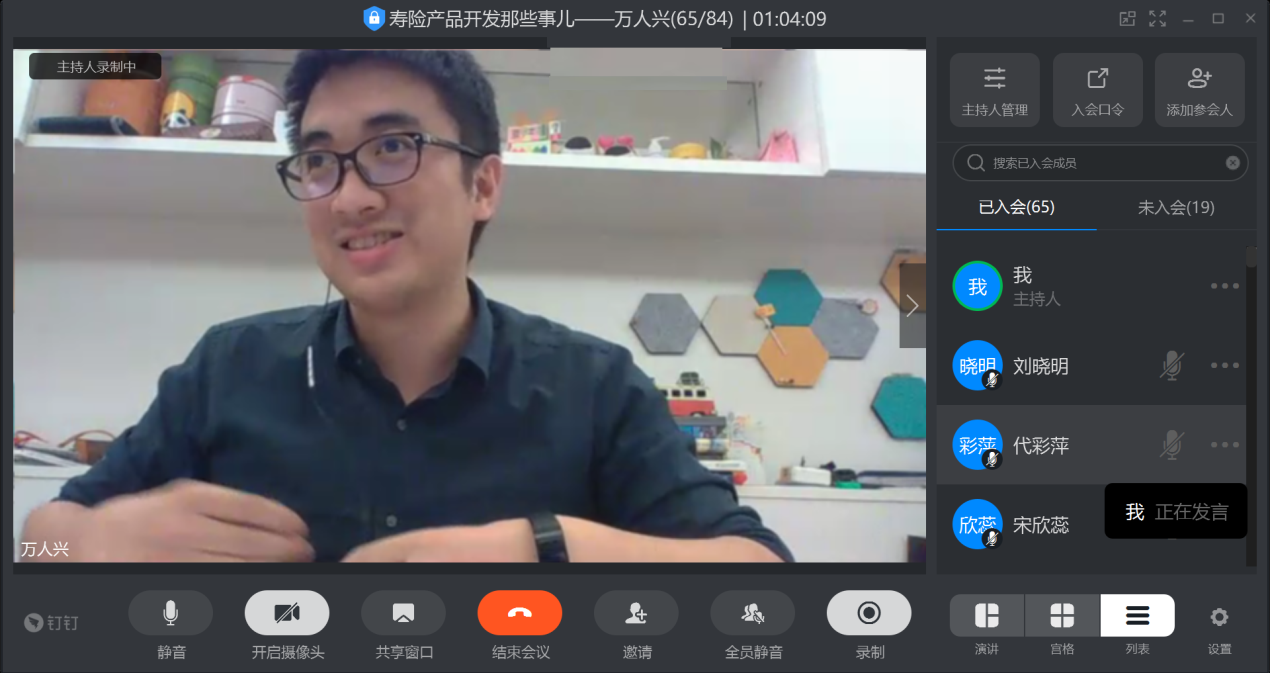 2020年6月5日晚,中国精算研究院廖朴副教授邀请到工银安盛人寿保险有限公司精算部高级定价经理万人兴先生,在钉钉平台进行主题为“保险产品开发那些事儿”的精算实务线上讲座。此次讲座为必赢nn699net官网中国精算研究院精算论坛第171期讲座,由廖朴副教授主持,刘健副教授及部分研究生和保险公司员工参加。