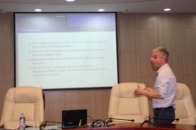 在本次讲座中,Antonino Zanette教授主要介绍了他和合作者首次提出的金融衍生品和保险产品定价的两种混合树方法:二叉树结合有限微分的方法,二叉树结合蒙特卡洛模拟的方法。他首先简单地介绍了原有的树方法、蒙特卡洛模拟法和有限微分法等方法在高维随机模型定价时的局限性,然后提出了混合树方法的思想,也就是在二叉树结构的基础上,对二叉树的每个结点运用有限微分法和蒙特卡洛模拟法来计算该结点对应的支付函数价格,利用二叉树结构的向前递推的结构,从到期日的支付倒推出初始购买日的产品价格,最后他给出了运用两种混合树方法的数值运算结果,并通过与传统蒙特卡洛模拟结果和偏微分方程法结果的比较,展示了混合树方法的运算优势和高效性。