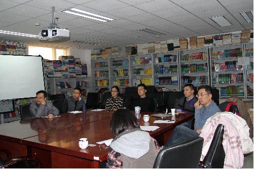 在李波博士的报告中,他介绍了其研究的关于谱负的Levy过程问题的最新的成果,并详细的阐述了其结果的在计算保险精算相关问题时的应用价值和其得到结果的一些新的证明方法和研究思路。在报告中,各位老师与李波博士在其领域进行了深入的交流与探论。