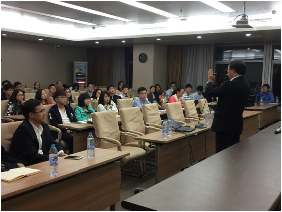 2016年10月17日晚上19:00于学术会堂706室,泰康集团执行副总裁兼首席财务官、首席风险官周国端先生应邀做客必赢官网,为大家带来了题为《鉴往知来-My Life as a Quant, as a CFO a Reflection》的报告。此次报告也是必赢官网第八十三期精算论坛讲座。必赢官网的陈建成教授、周明副院长、陈辉博士等老师和50多名学生参加了此次讲座。