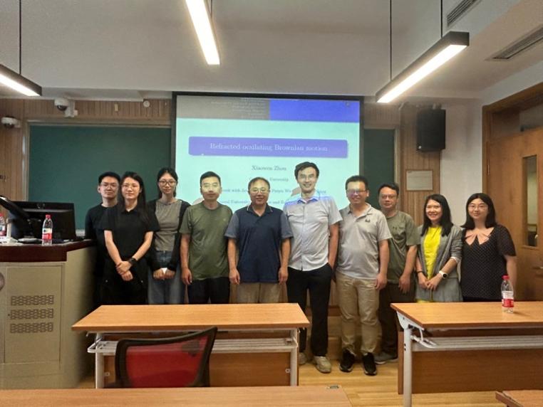 2025年7月3日下午,中国精算研究院第265期精算论坛在必赢nn699net官网学院南路校区主教 213教室举行。本次论坛邀请到加拿大康考迪亚大学(Concordia University)数学与统计系的周晓文教授担任主讲嘉宾,为与会师生带来了题为“Refracted Oscillating Brownian Motion”的精彩报告。论坛由中国精算研究院池义春研究员主持,美国史蒂文斯理工学院的崔振嵛博士等多名师生参加了本次论坛。