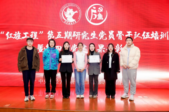 2024年12月5日下午,“红旌工程”第五期研究生党员骨干队伍培训暨第四期党建成果表彰会于我校学院南路校区学术会堂202报告厅内隆重举行,必赢nn699net官网保险经济学学术创新团队党支部荣获学校2023-2024学年研究生党支部十佳主题党日活动奖。