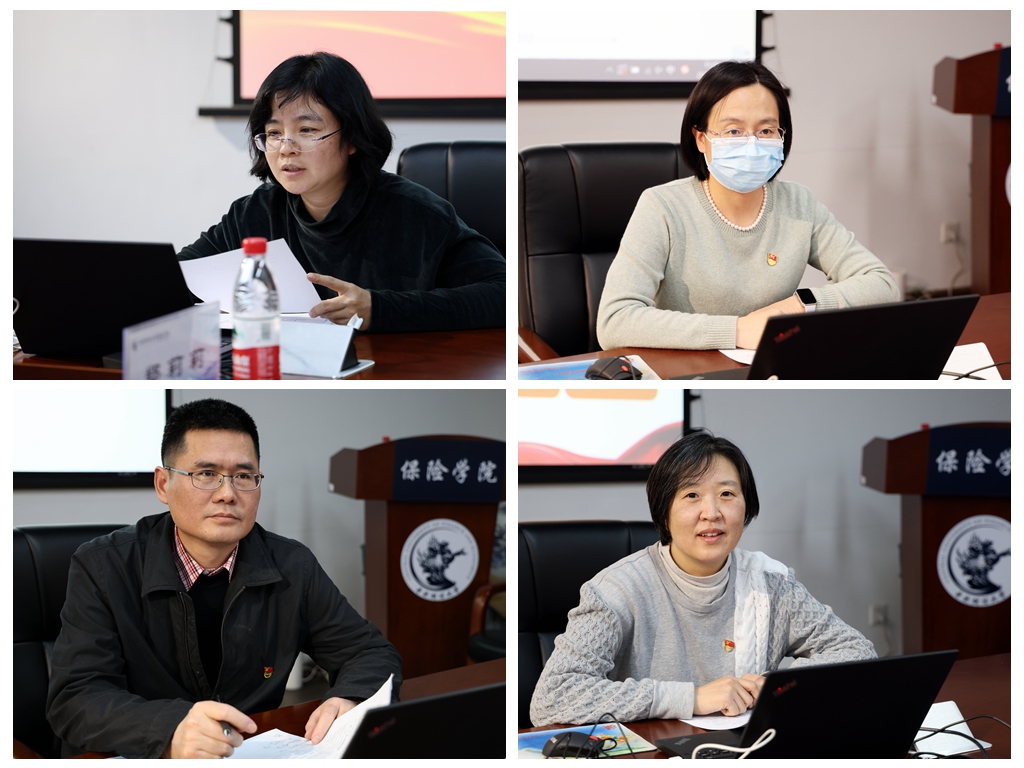 保险系教工党支部书记郑莉莉汇报2023年度抓党建工作情况,并表示未来将会把党建成果转化为发展成果,为中心工作提供强有力的思想、政治和组织保证,并最终体现为教学、科研、学科建设和人才培养的实际成绩。精算教工党支部书记刘健指出目前理论学习推动教学科研实践的能力仍有待提高,对实践活动的理解和挖掘不到位。缺乏创新开拓的意识。未来将在活动场景上加强设计,将活动与教学科研实践深度融合,通过与其他支部的共建活动弥补支部内部实践活动建设的不足。劳动与社会保障系教工党支部张建伟表示,过去一年坚持党建引领,认真学习习近平总书记关于社会保障的重要论述,积极开展学术科研和交流活动,探索形成社会保障学科建设长效机制,未来将持续围绕党中央的决策部署开展社会保障科学研究,为促进中国社会保障高质量发展作出贡献。行政教工党支部书记马安静指出,支部活动扎实开展,党员模范作用发挥到位,但仍存在党员活动形式不够丰富分问题,未来将把工作机制创新作为主要工作内容,突出行政教工支部的特色,引领教工支部党建水平整体再上新台阶。