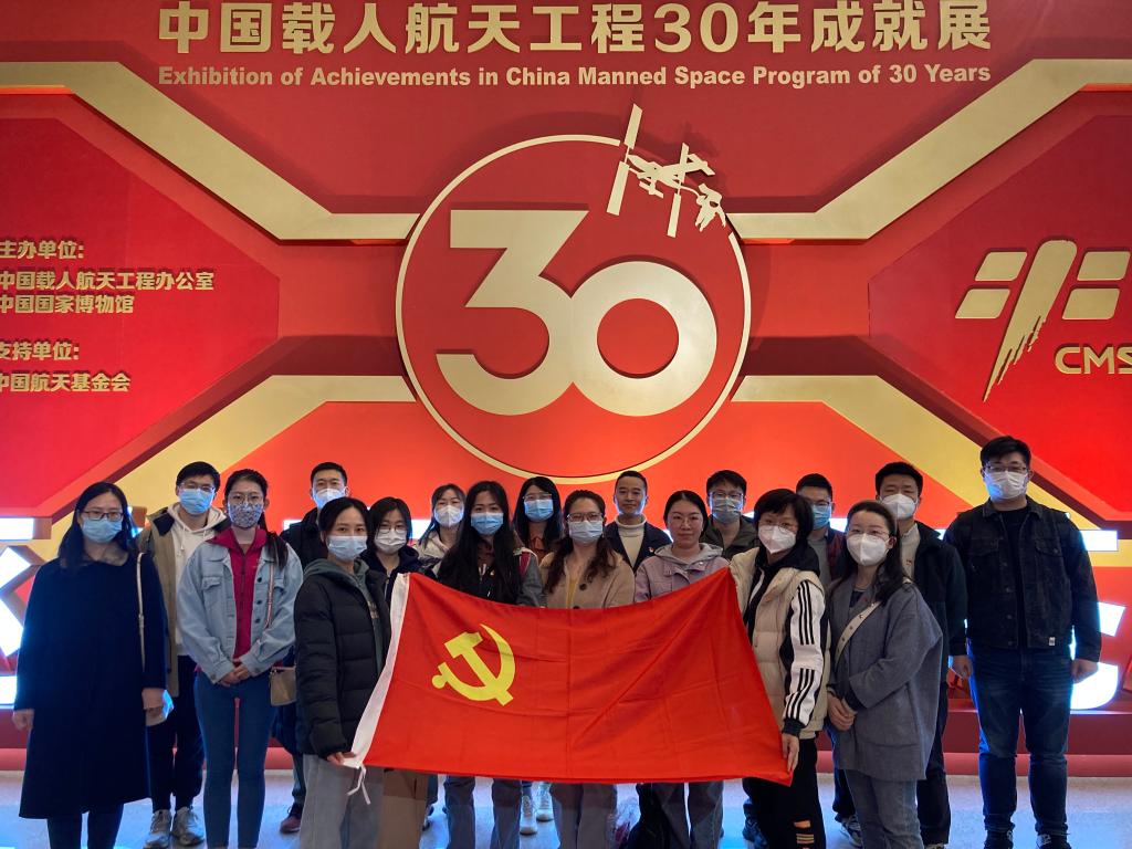 3月17日上午,支部党员、入党积极分子等走进国家博物馆,集体观看“逐梦寰宇问苍穹——中国载人航天工程30年成就展”。该展览以“回望飞天路、奋进新征程”为主题,面向社会公众全面系统展示了中国载人航天工程三十年发展历程和建设成就。可步入舱内参观的天和核心舱1∶1模型、中国自主研发的“飞天”舱外航天服、新一代载人飞船及月面着陆器等未来载人登月主要飞行产品模型……一件件展品,生动展现出中国载人航天工程几十年来的辉煌成就,极大激发了支部同学的民族自豪感、自信心与爱国情怀。