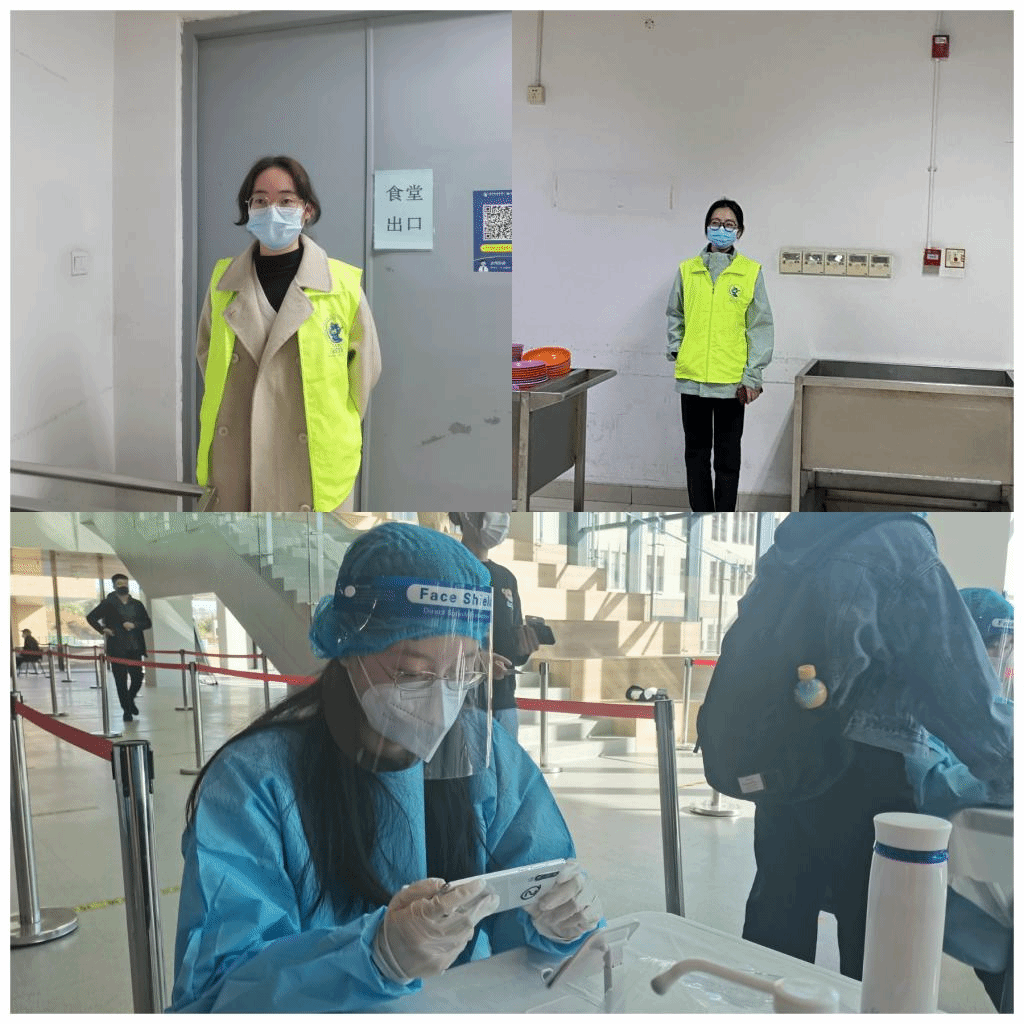 “抗疫”一线党旗红,在学校核酸常态化检测中,支部党员张淑桐积极报名核酸检测志愿者,为前来进行核酸检测的师生扫码登记;支部党员应雨梦、陶思宏投身志愿服务中,提醒来食堂就餐的师生扫码、测温,保障了师生的就餐安全。