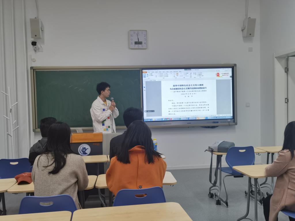 首先,支部成员在支部书记张龄立的带领下共同研读了党的二十大报告。党的二十大是在我国迈向全面建设社会主义现代化国家新征程、向第二个百年奋斗目标进军的关键时刻召开的一次十分重要的会议,它指明了国家未来的前进方向,青年党支部应该紧跟脚步,进行深入学习。