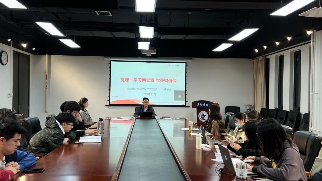 为学习贯彻党的二十大精神,深刻领悟党章修改的重要意义与精神内核,牢固树立党员意识信仰,加强本科毕业生党员的党性修养,2022年11月2日,必赢nn699net官网本科生第二党支部召开“学习新党章 党员树信仰——支部书记讲党课”活动,由支部书记杨德齐老师讲授党课,党支部全体党员参加。