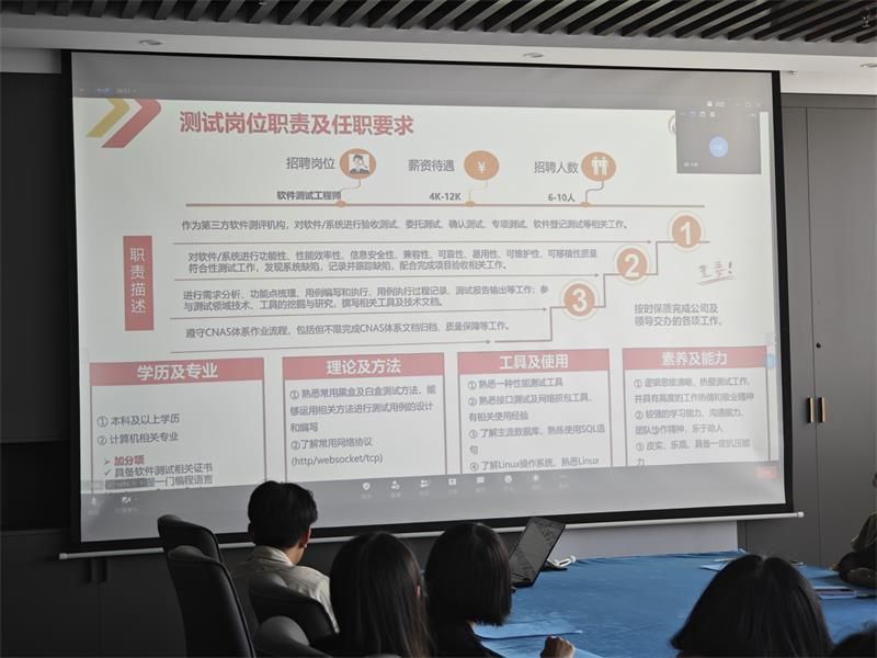 刘新经理从2024年就业前景和测试岗位分析、软件测试发展新趋势和新挑战、软件测试职业优势及发展路径、软件测试需要具备的知识和技能、公司介绍及招聘要求等五个方面展开介绍。讲座后,学生积极响应,根据自己的专业和困惑进行了提问,刘经理都给予了精彩的答复,并根据学生感兴趣的话题进行讨论。学生参与讲座后都受益匪浅。