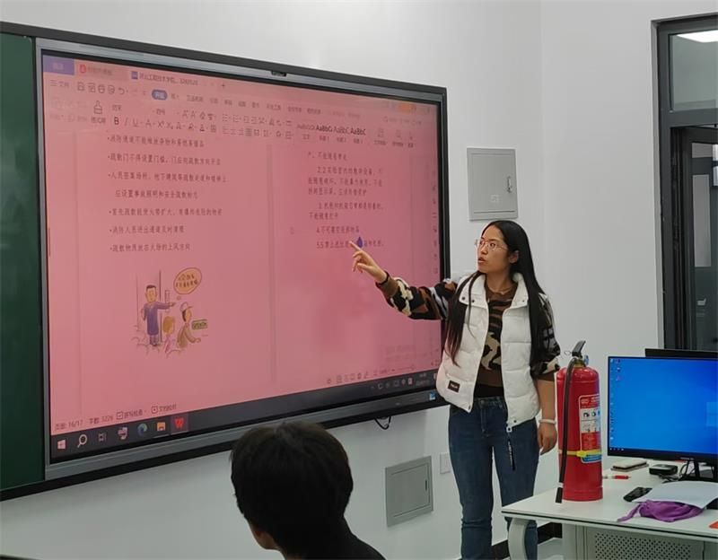 然后是实验室安全准入培训。实践教学中心管理人员向学生讲解实验室的安全管理制度、操作规程、安全责任等,确保进入实验室人员能够遵守制度,规范操作。并向学生培训应急处理技能包括正确使用灭火器、紧急疏散和安全逃生等技能。